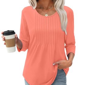 Women's 3/4 Length Sleeve Crewneck Casual Pleated Tunic Tops