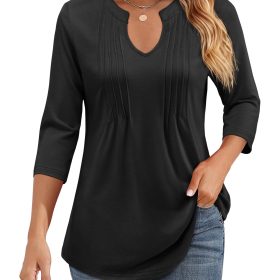 Women's Casual 3/4 Sleeve Pleated Tunic Blouse