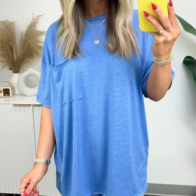 This oversized pocket top is your new go-to for effortless style. With its stylish short sleeve design and oversized pockets, you’ll be both comfortable and stylish. Suitable for any casual occasion, this t-shirt is a must-have for your wardrobe!