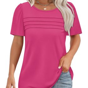 This cute top fits flowy and comfortably, the pleating design helps contour the chest area and conceal tummy issues, and the puff sleeves hide big arms nicely. The curved hem adds a stylish touch, long enough to cover the rear, making it perfect to wear with leggings.